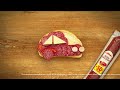 Съставки: свинско месо, сланина, СОЕВ ПРОТЕИН, нитритна сол (трапезна сол, консервант: натриев нитрит), декстроза, стабилизатор: дифосфати, подправки и екстракти от подправки, антиоксидант: изоаскорбинова киселина, естествени оцветители: кармини.